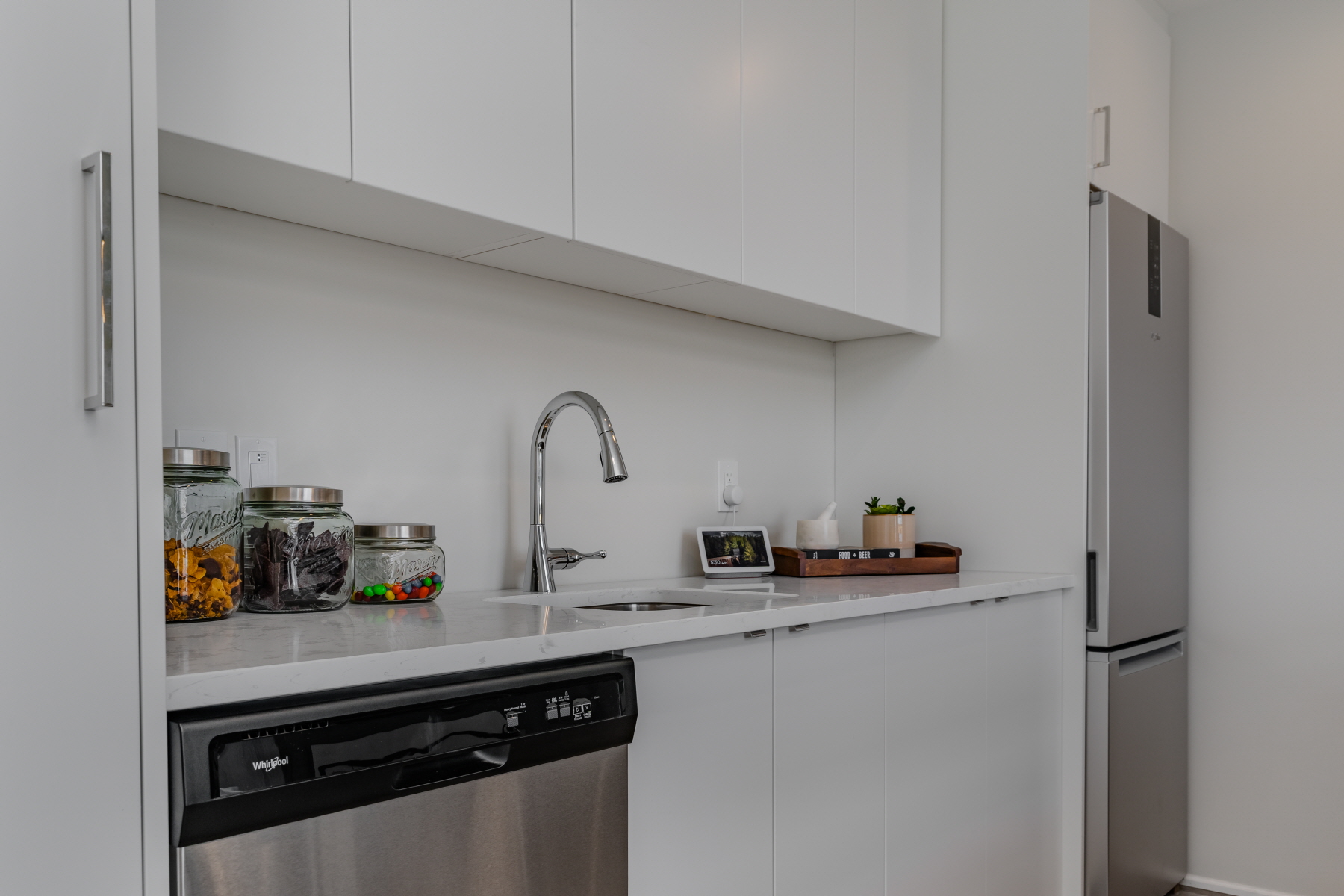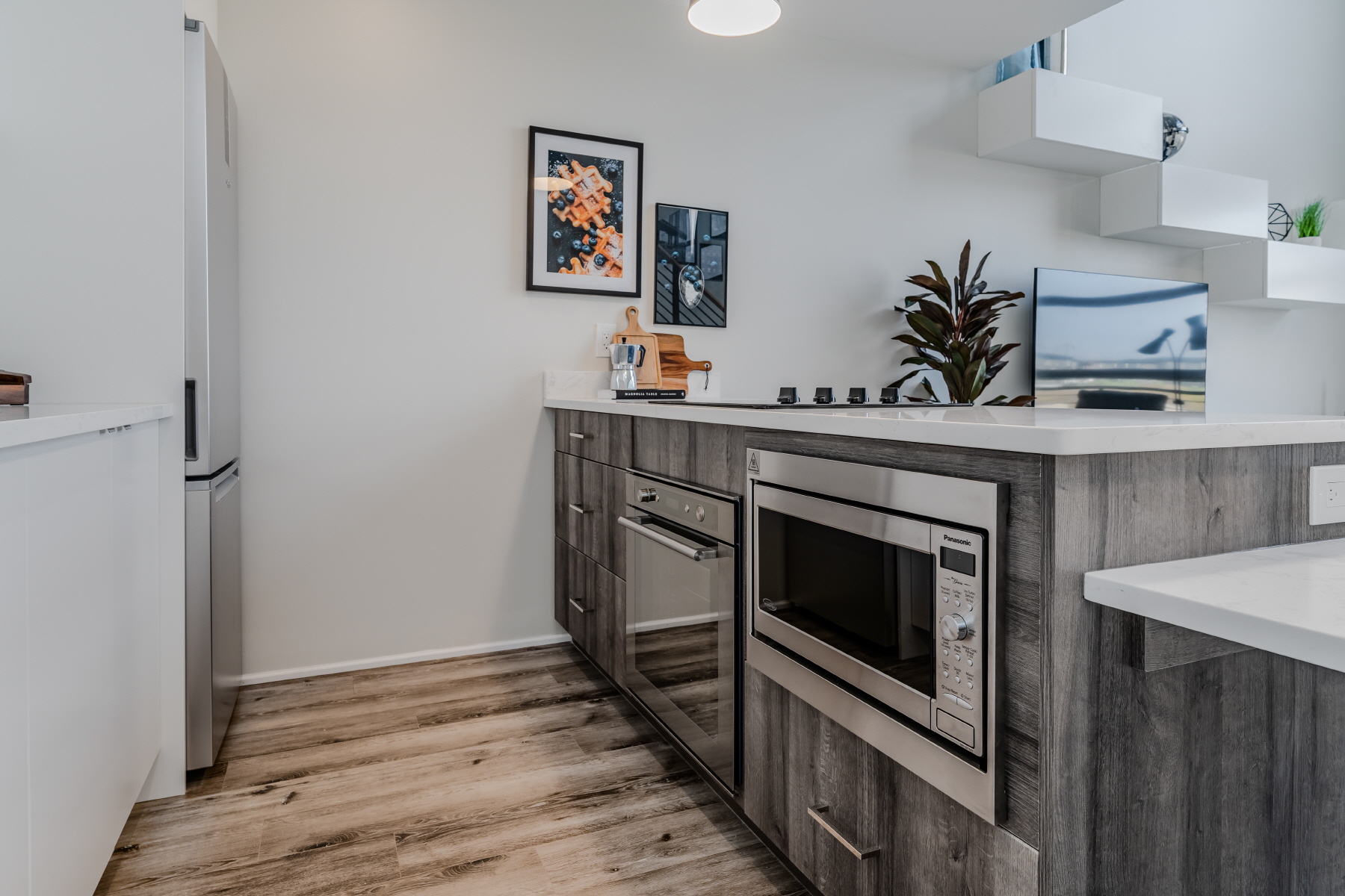 - Modern kitchen with 6 appliances (dishwasher, washer, dryer, microwave, refrigerator, stove)