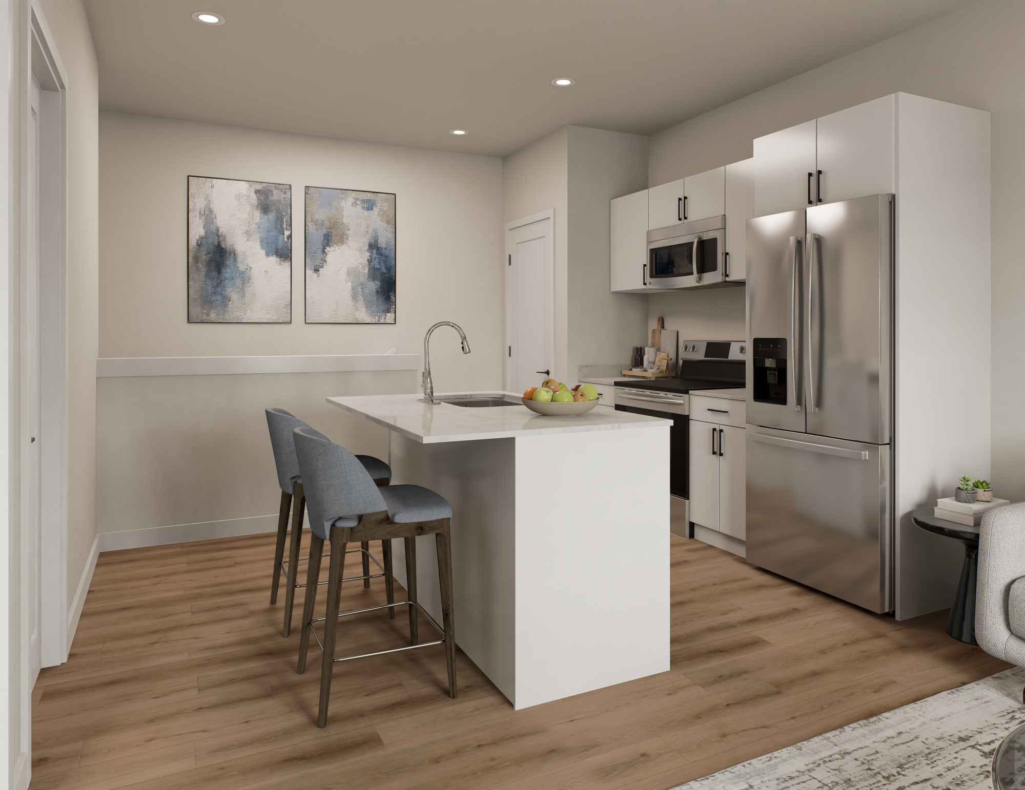 - Bright kitchen with fabulous quartz countertops
